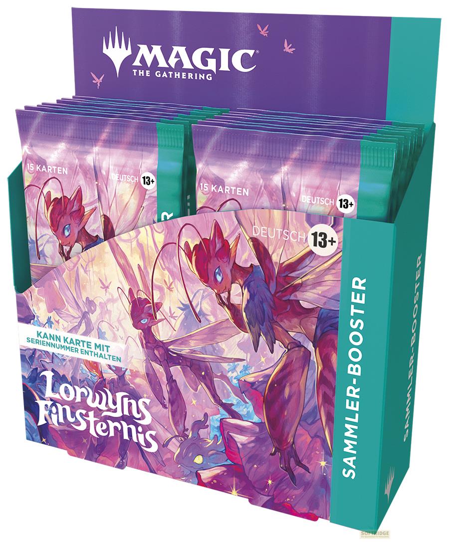 Jede Boosterpackung enthält seltene und/oder sagenhaft seltene Karten, Foilkarten und ein Standardland mit großflächiger Illustration, entweder im Lorwyn- oder im Schattenmoor-Stil. Vielleicht entdeckst du auch umkehrbare Schockländer ohne Rand, Karten mit Fabel-Kartenrand und Karten ohne Rand, illustriert von klassischen Magic-Kunstschaffenden. Wenn die Sterne günstig stehen, erwartet dich eine besondere Überraschung: 1 von 500 Bitterblüten-Überbringern als Headliner-Karte mit Seriennummer und Illustration von Rebecca Guay!