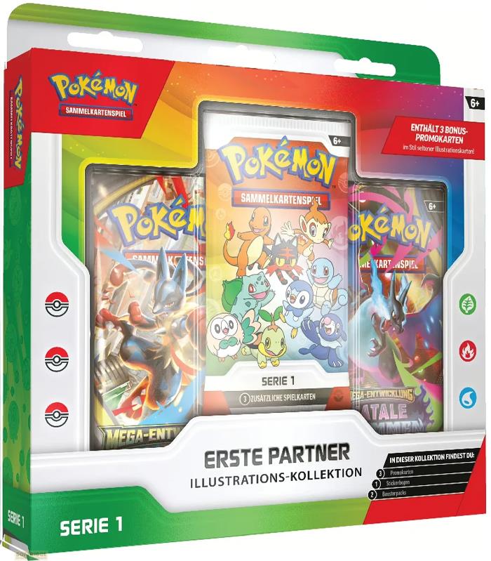 Die Illustrations-Kollektion Erste Partner Serie 1 des Pokémon-Sammelkartenspiels enthält: